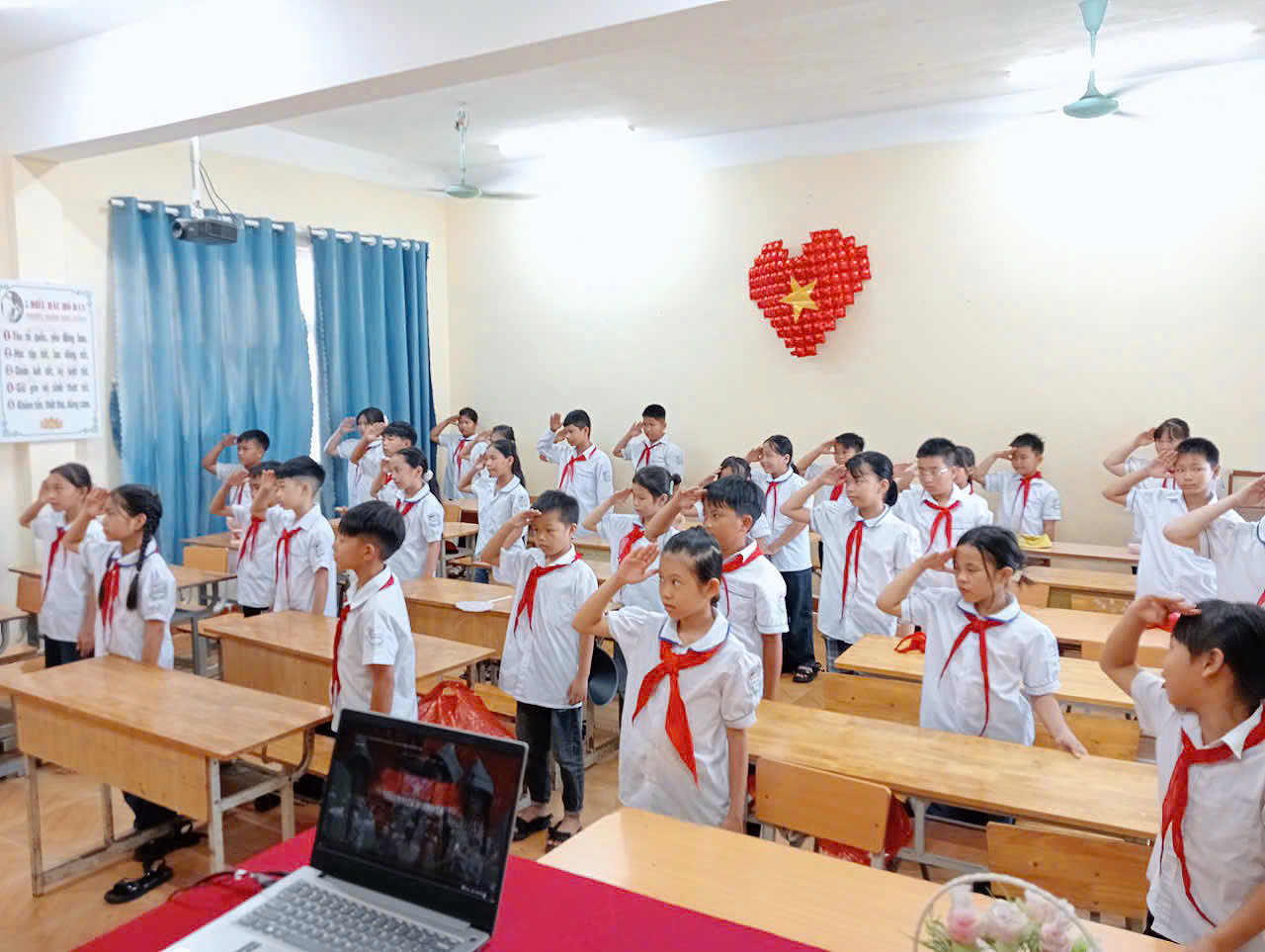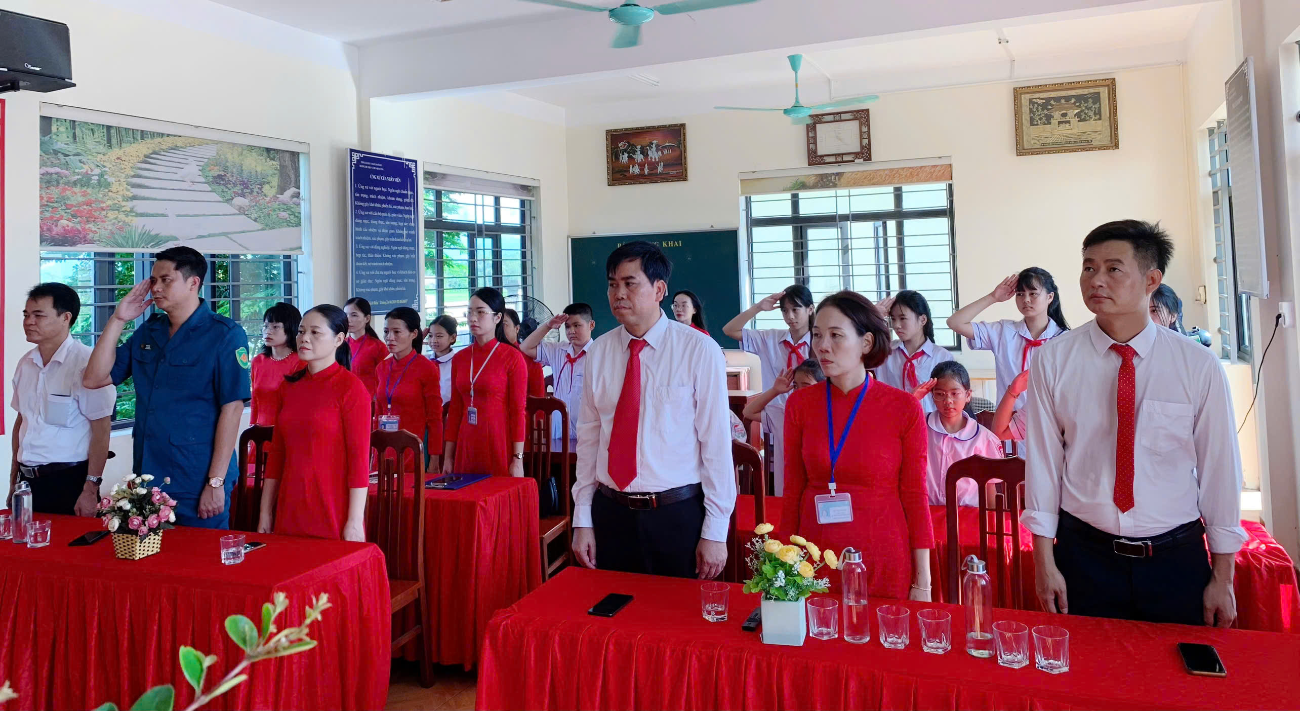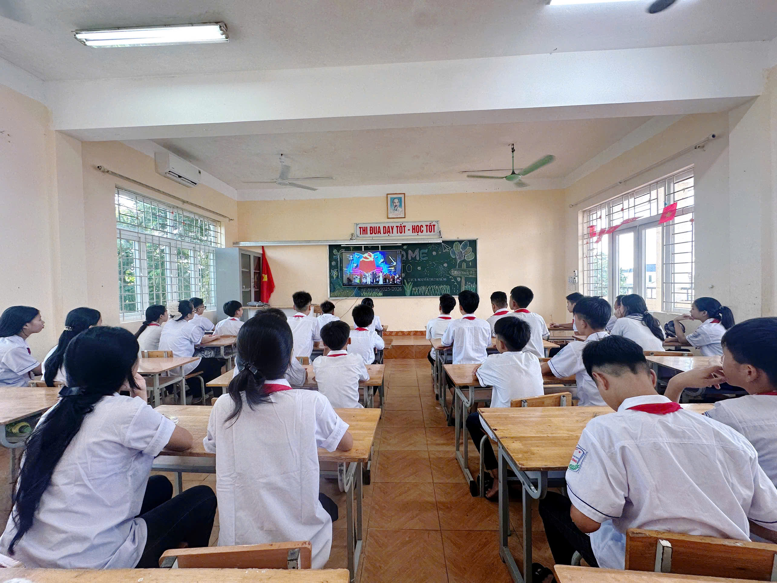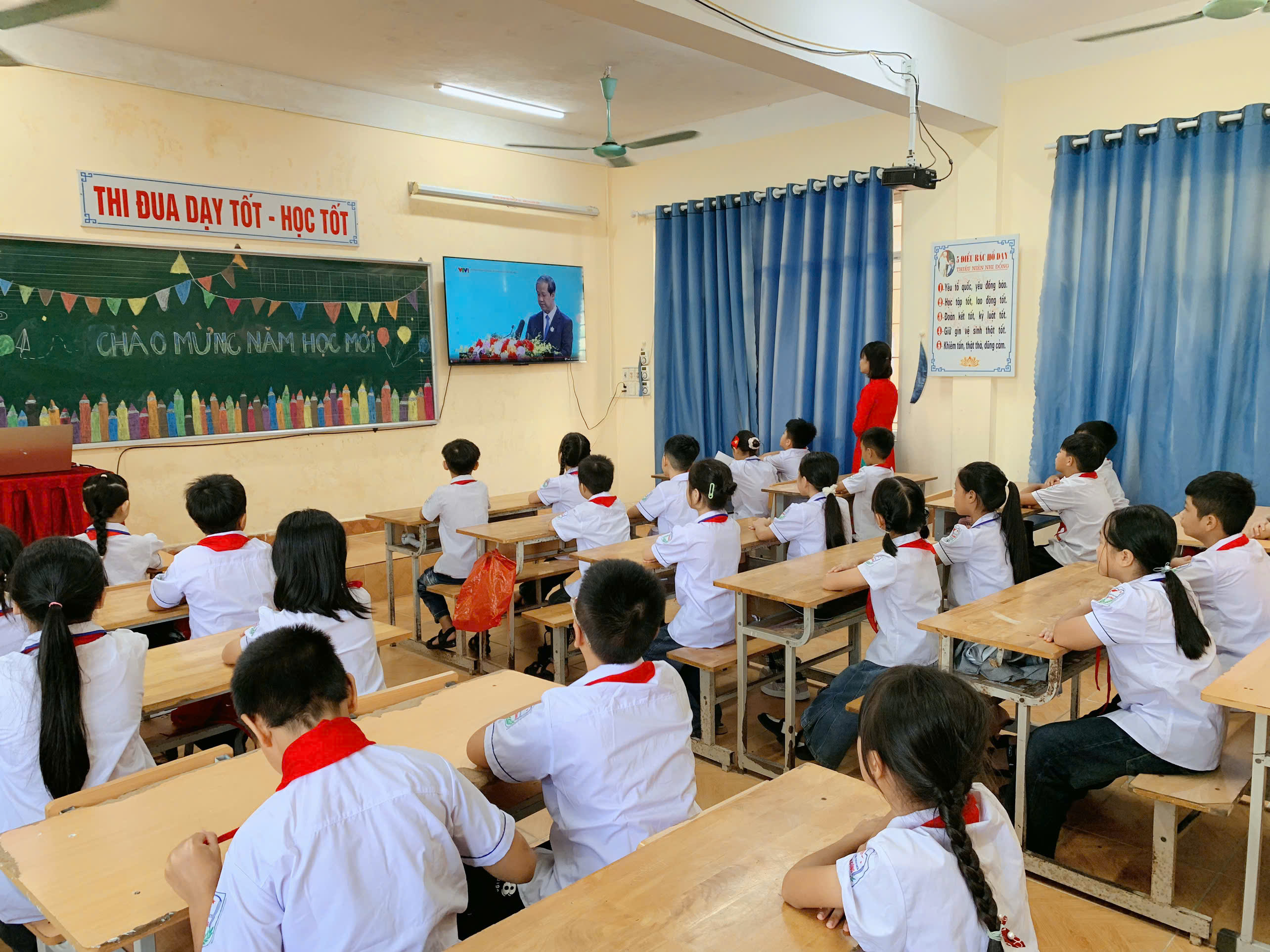Tiếp đó, toàn thể đại biểu, cán bộ, giáo viên và học sinh nhà trường đã dự theo hình thức trực tuyến chương trình Kỷ niệm 80 năm thành lập Bộ Giáo dục Quốc gia (nay là Bộ Giáo dục và Đào tạo) và Lễ khai giảng năm học 2025-2026 tại Trung tâm Hội nghị Quốc gia.