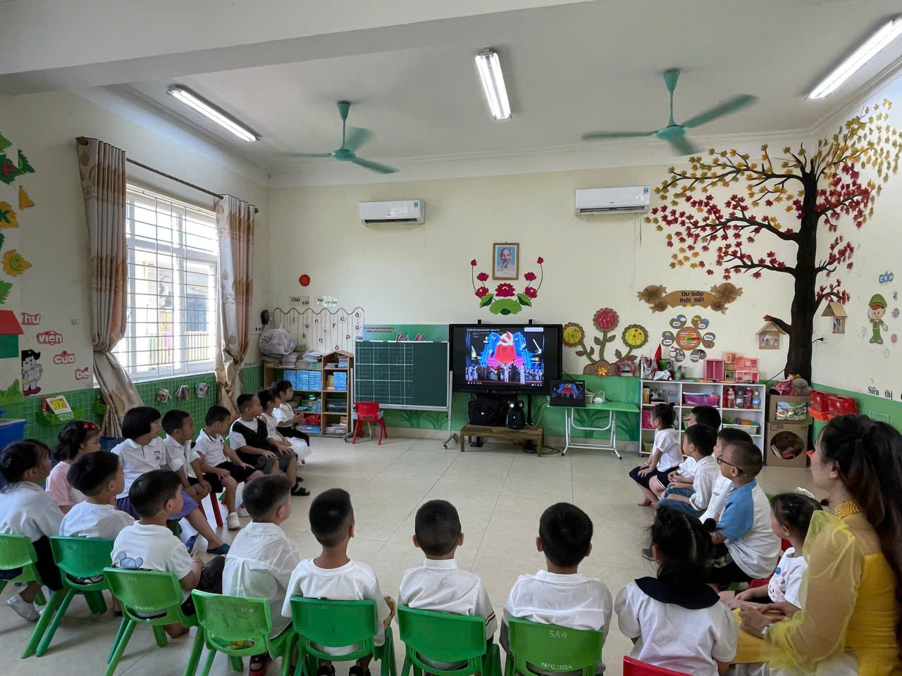 Sau khi tham dự khai giảng, tập thể cô trò nhà trường được xem trực tuyến buổi truyền hình kỷ niệm 80 năm truyền thống ngành Giáo dục với ý nghĩa: Khẳng định vai trò quan trọng của ngành Giáo dục; Khơi dậy niềm tự hào và trách nhiệm của thế hệ trẻ; phát huy truyền thống “tôn sư trọng đạo” của dân tộc Việt Nam