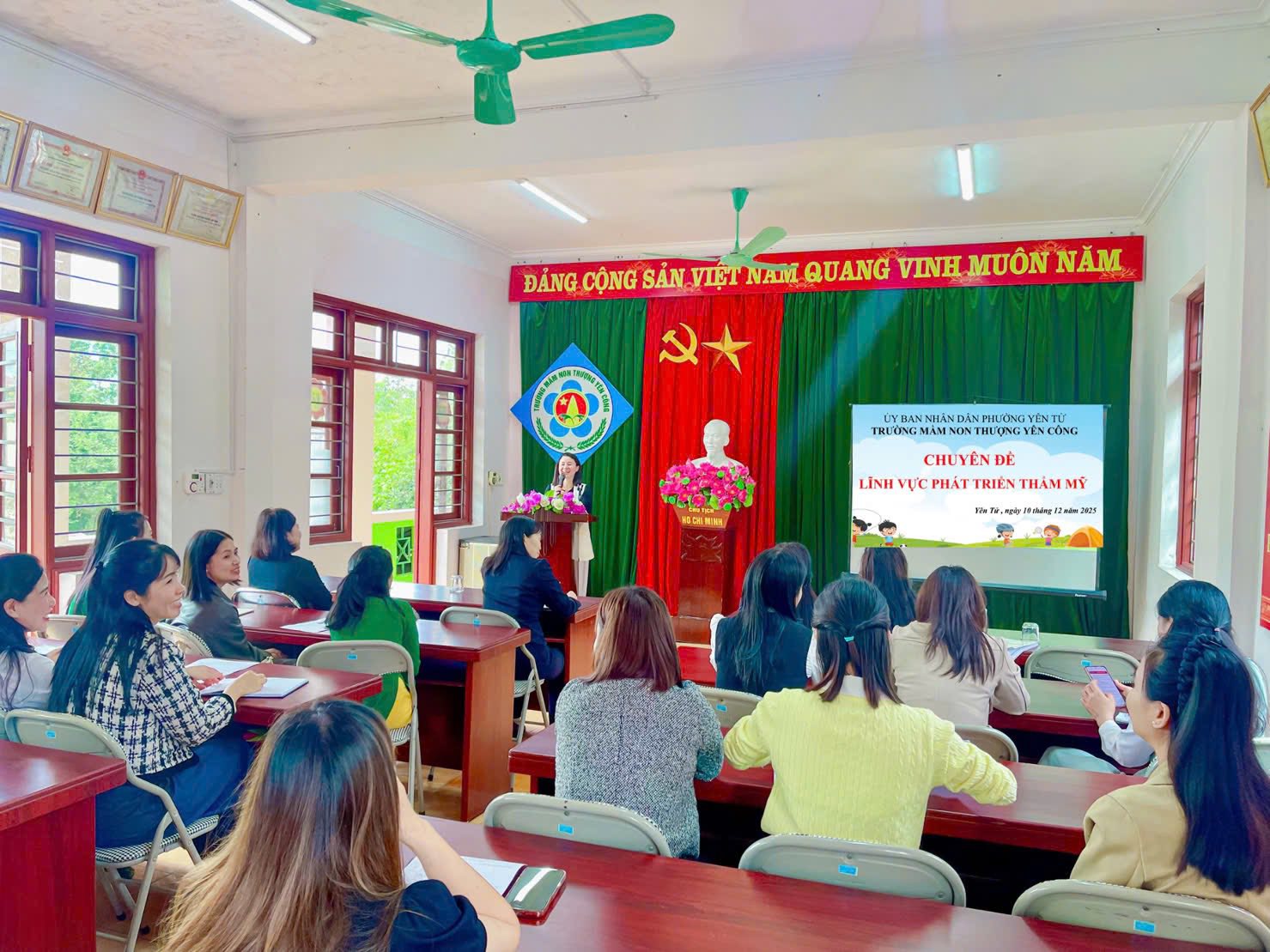 Thực hiện kế hoạch chuyên môn năm học 2025–2026, ngày 10/12/2025 Trường Mầm non Thượng Yên Công tổ chức chuyên đề lĩnh vực phát triển thẩm mỹ” với các hoạt động sáng tạo nghệ thuật trong Tạo hình cho trẻ ở 3 độ tuổi. Các hoạt động đã diễn ra trong sự hào hứng, thích thú và say mê qua đó giúp trẻ tự tin, mạnh dạn và phát huy tối đa khả năng sáng tạo của trẻ.