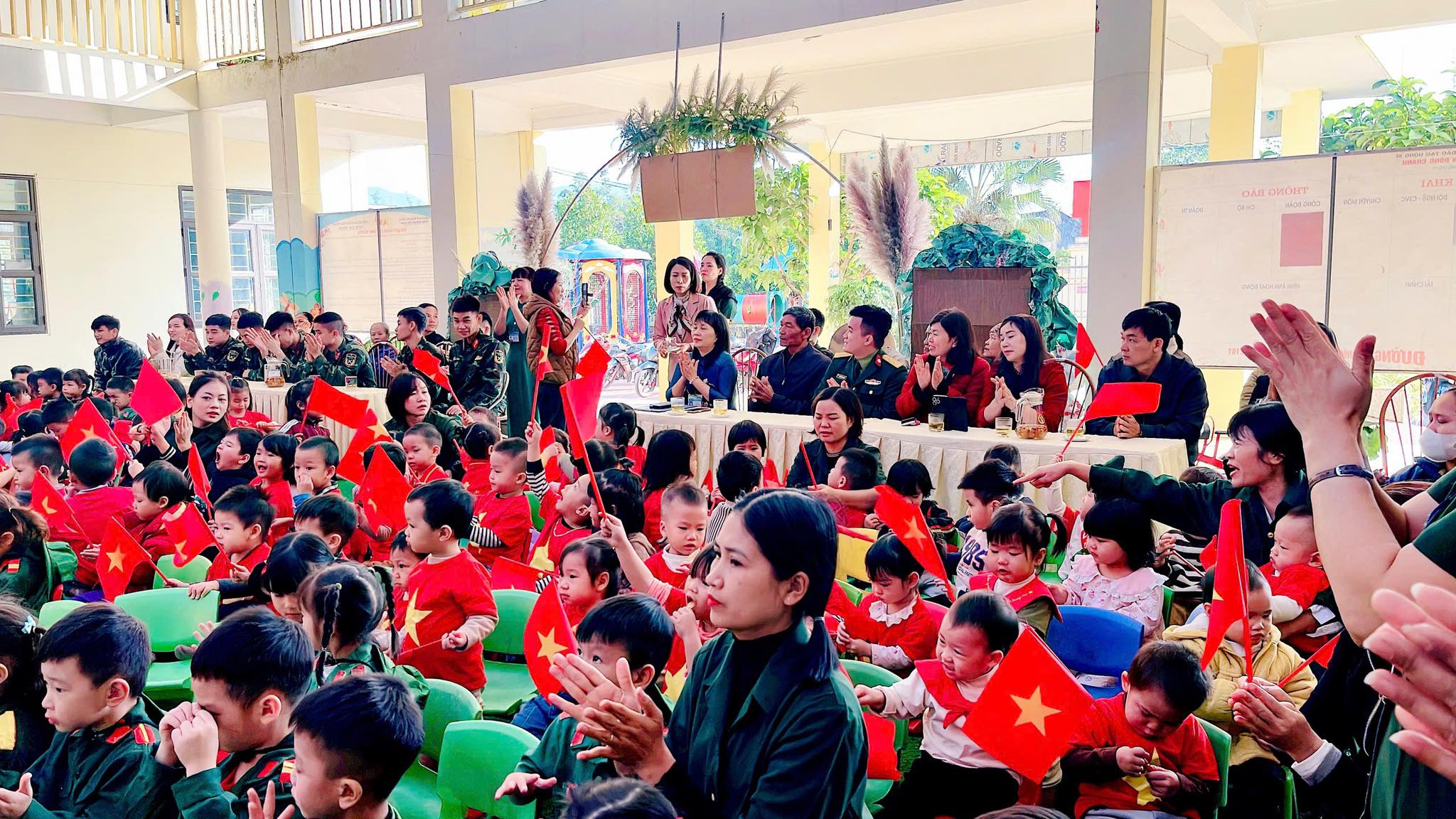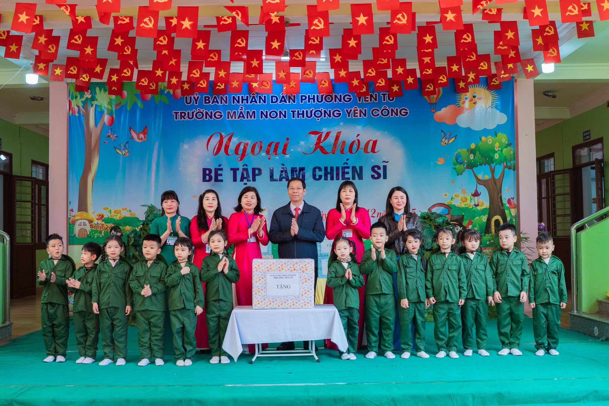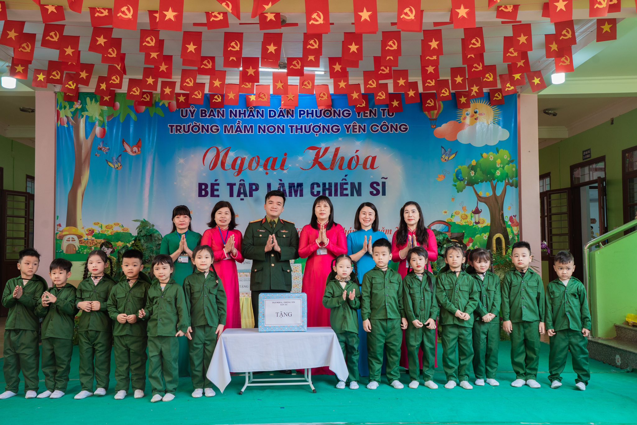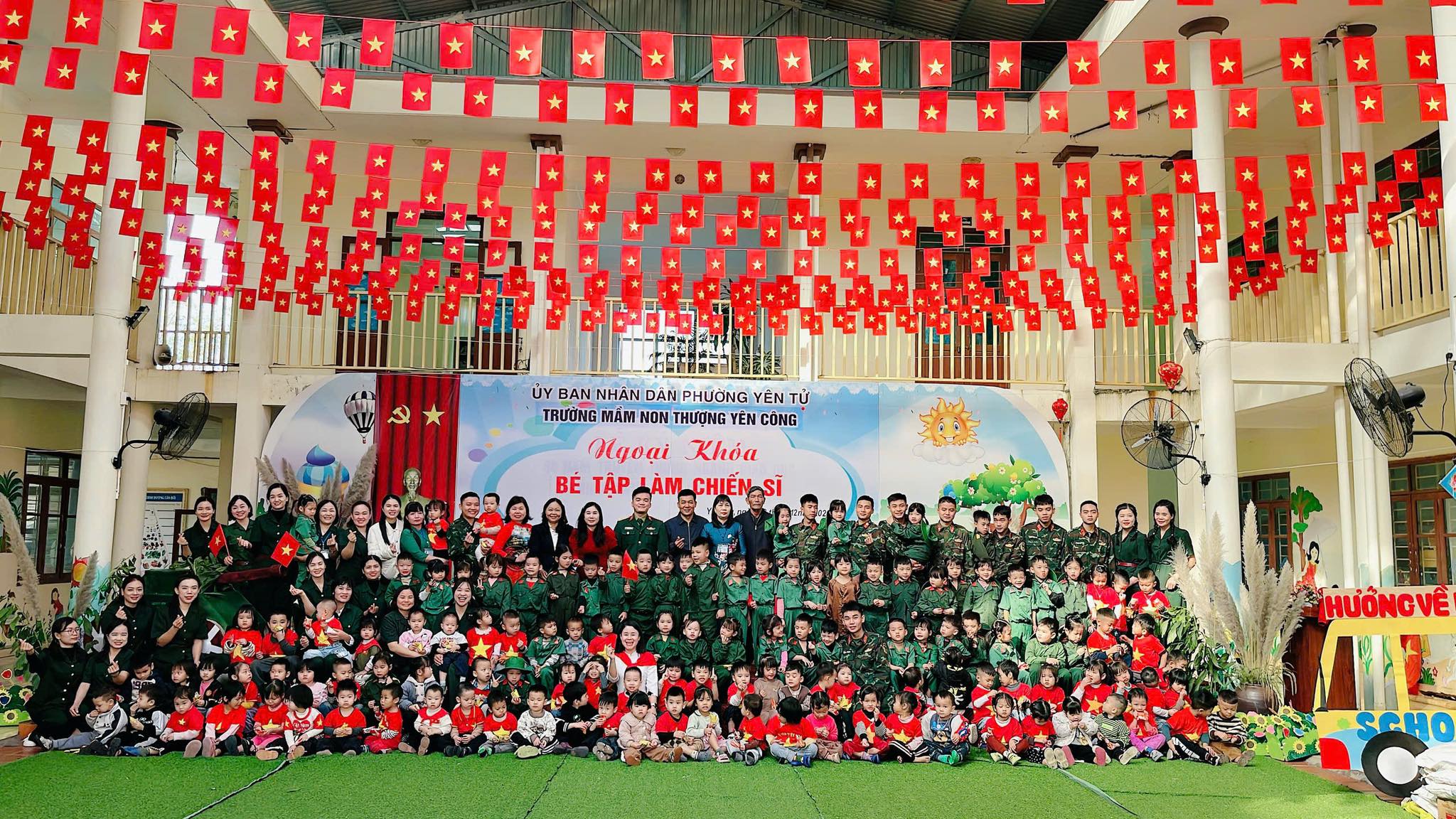 Nhà trường xin trân trọng cảm ơn các Đ/c lãnh đạo phường Yên Tử, các Đ/c lãnh đạo các khu dân cư cùng quý bậc phụ huynh nhà trường đã quan tâm, luôn tạo mọi điều kiện giúp đỡ và đồng hành cùng nhà trường để chăm sóc- giáo dục và tạo nhiều điều bổ ích giúp các bé yêu của trường phát triển toàn diện. Và đặc biệt xin được gửi lời cảm ơn trân thành tới các chiến sĩ đại đội 6 thông tin Yên Tử đã dành thời gian tham gia giao lưu cùng nhà trường.