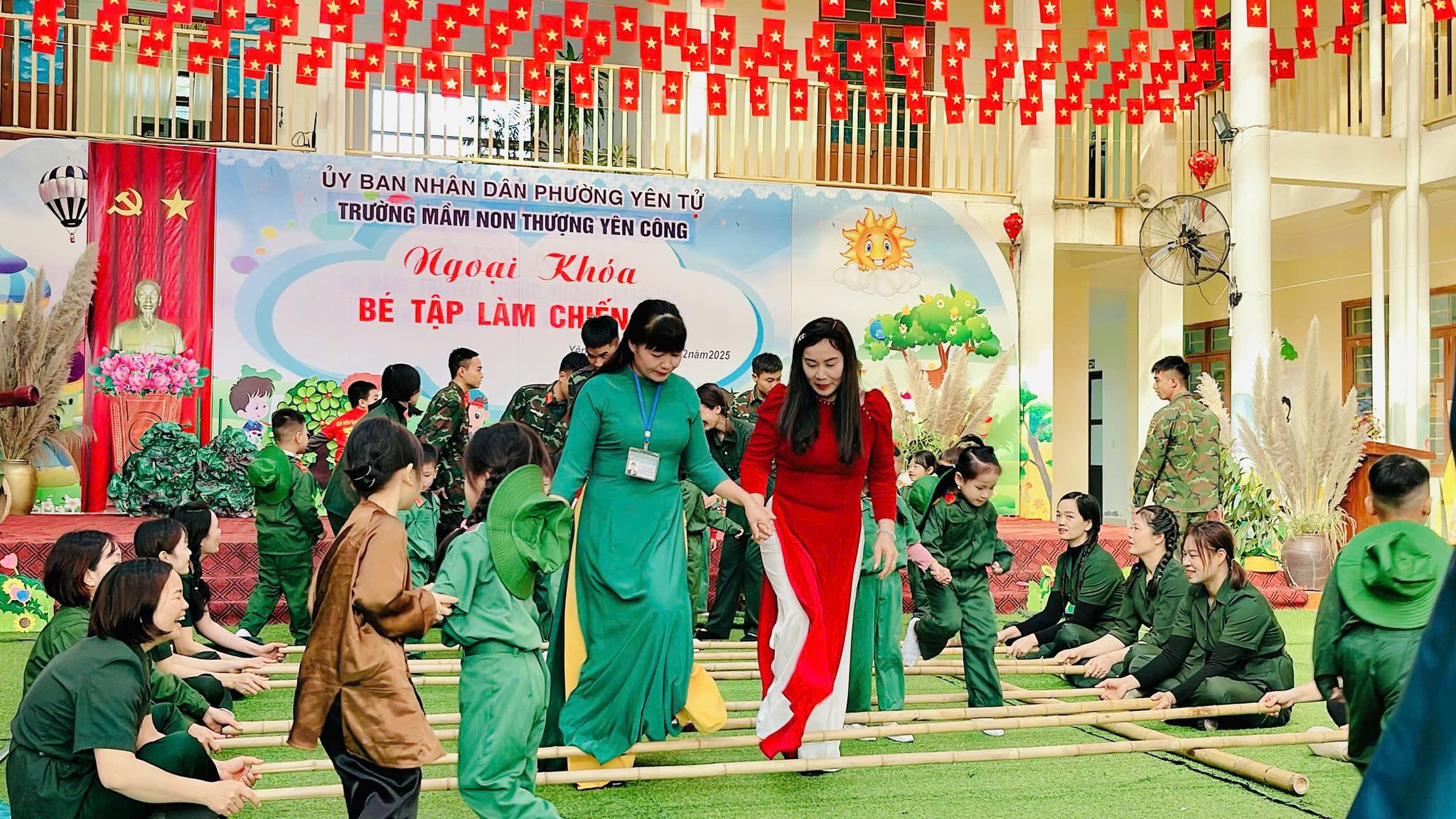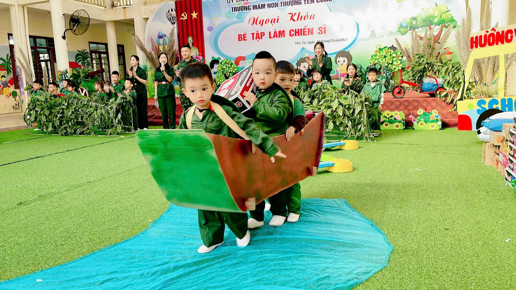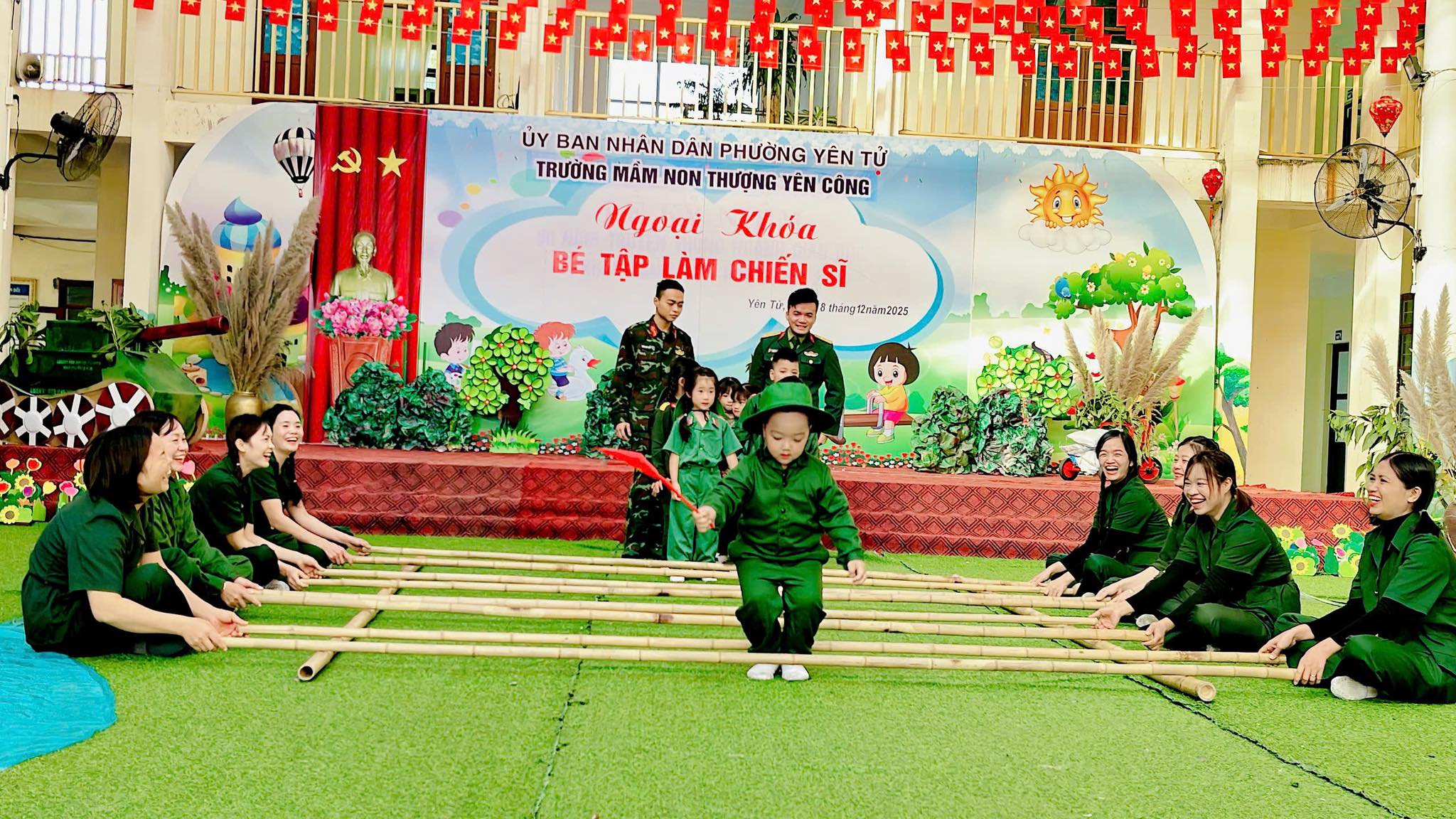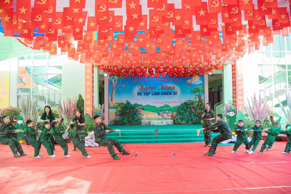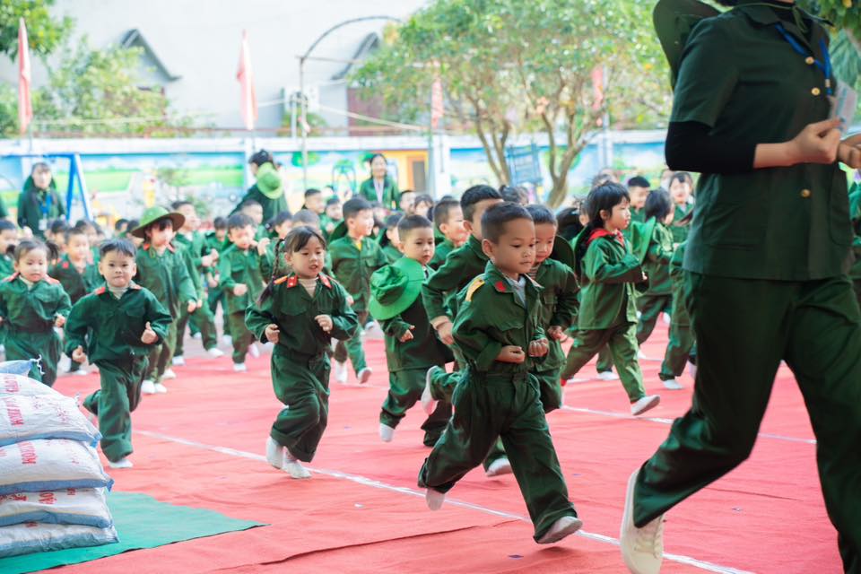 💚 Chương trình diễn ra với màn Đồng diễn vô cùng đặc sắc cùng tiết mục Múa nhac kịch giàu cảm xúc và phần chơi ở cuối chương trình là màn giao lưu trò chơi kéo co giữa các Đ/c chiến sĩ đại đội 6 thông tin Yên Tử và các bé, các cô trong nhà trường.