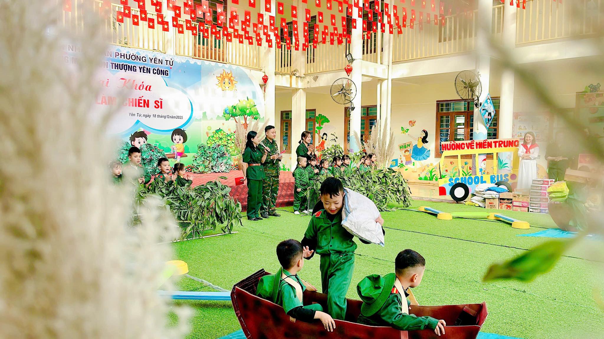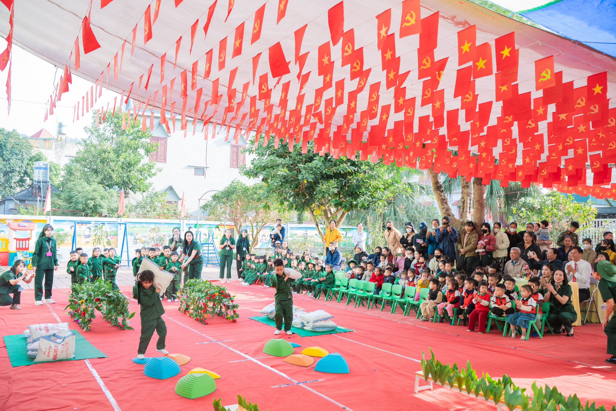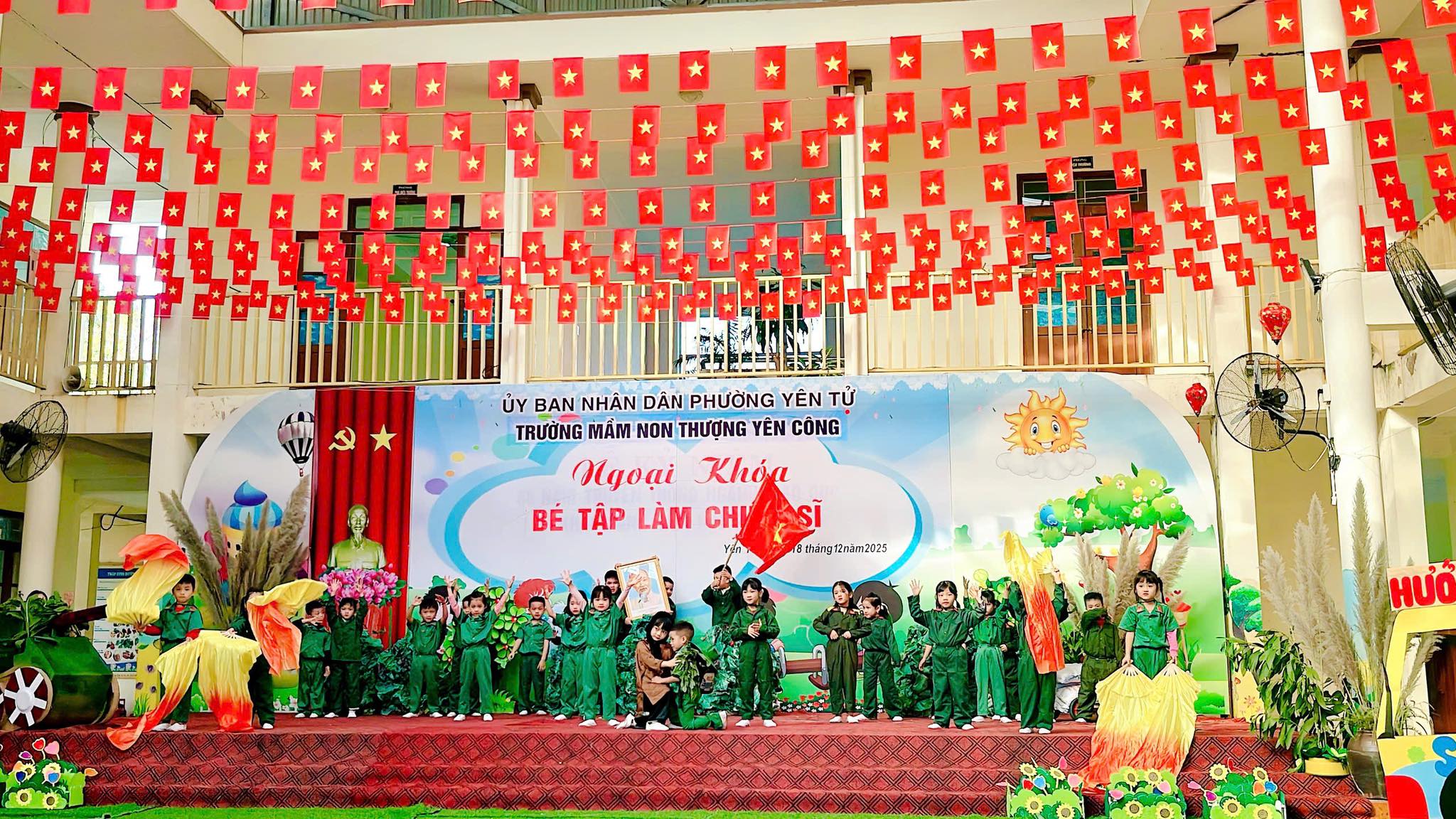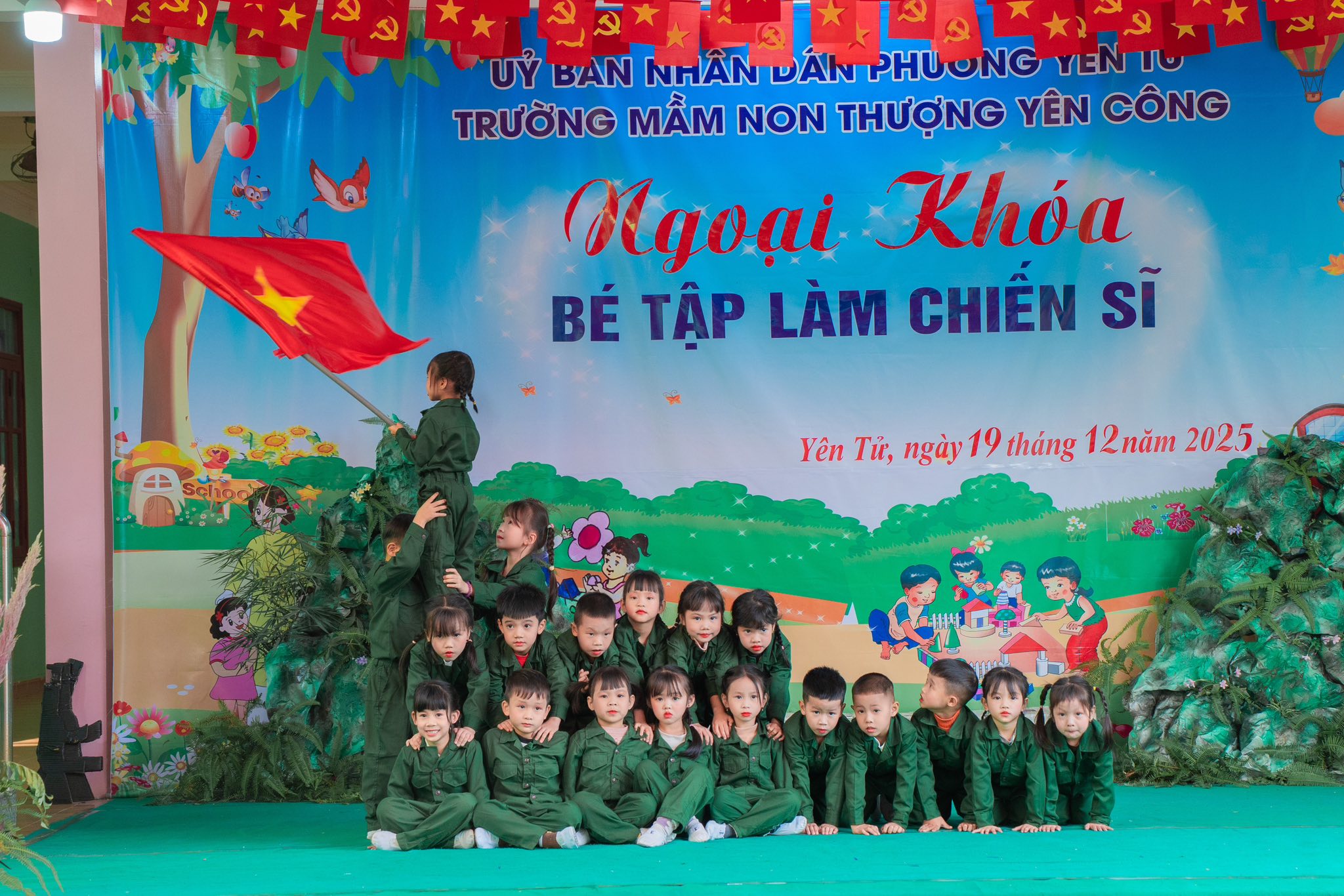 💚 Chương trình diễn ra với màn Đồng diễn vô cùng đặc sắc cùng tiết mục Múa nhac kịch giàu cảm xúc và phần chơi ở cuối chương trình là màn giao lưu trò chơi kéo co giữa các Đ/c chiến sĩ đại đội 6 thông tin Yên Tử và các bé, các cô trong nhà trường.