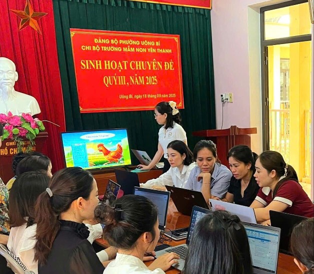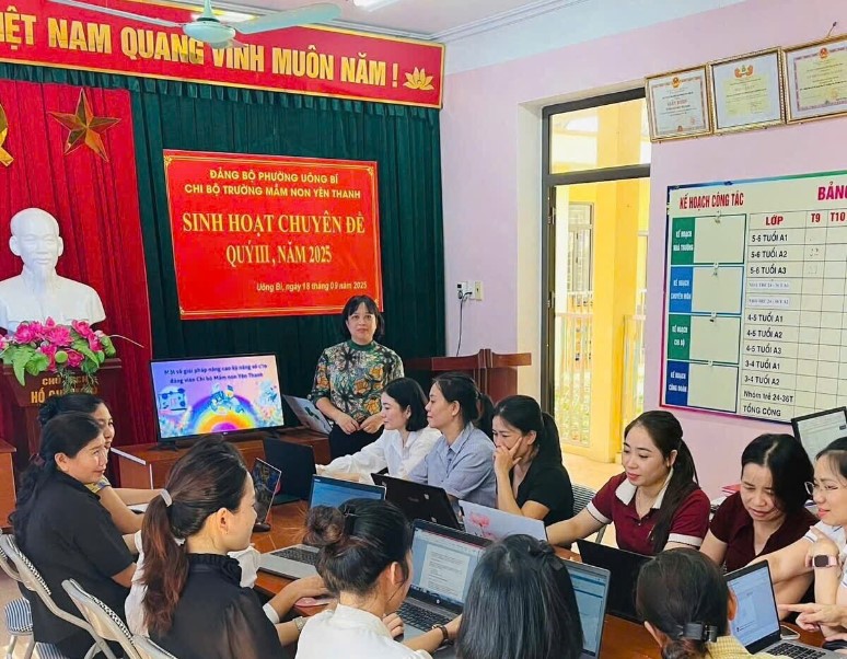 Sinh hoạt CĐ “Nhận thức về chuyển đổi số và tầm quan trọng của kỹ năng số cho đảng viên Chi bộ Trường Mầm non Yên Thanh”