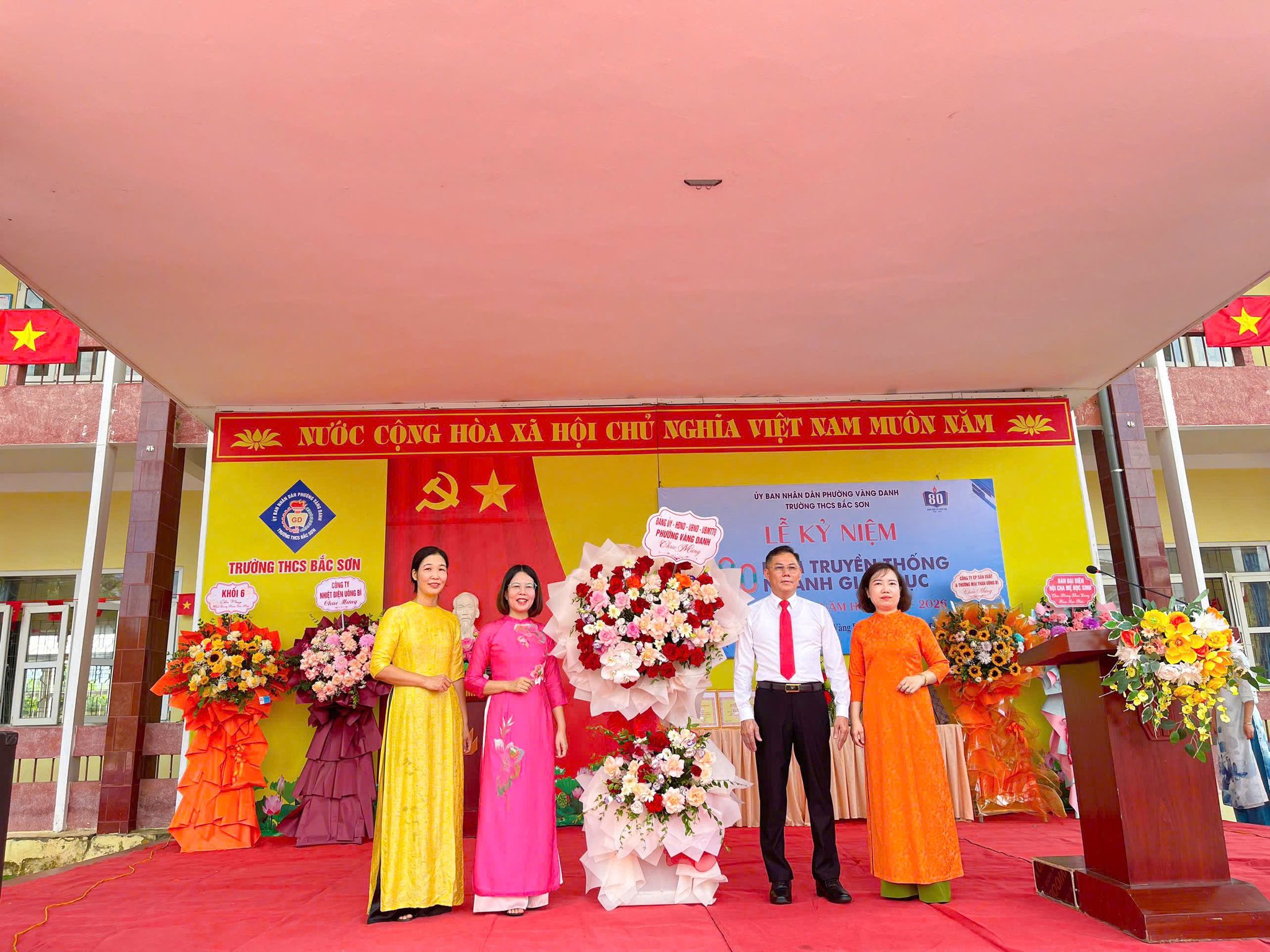 Đến dự, chúc mừng có Đoàn đại biểu đại diện cho Đảng uỷ , Hội đồng Nhân dân, Uỷ ban Nhân dân, Uỷ ban MTTQ phường Vàng Danh do đồng chí Bùi Huy Thục làm trưởng đoàn; cùng đại diện các cơ quan, đoàn thể, Ban đại diện cha mẹ học sinh cùng toàn thể cán bộ, giáo viên, nhân viên và học sinh toàn trường.