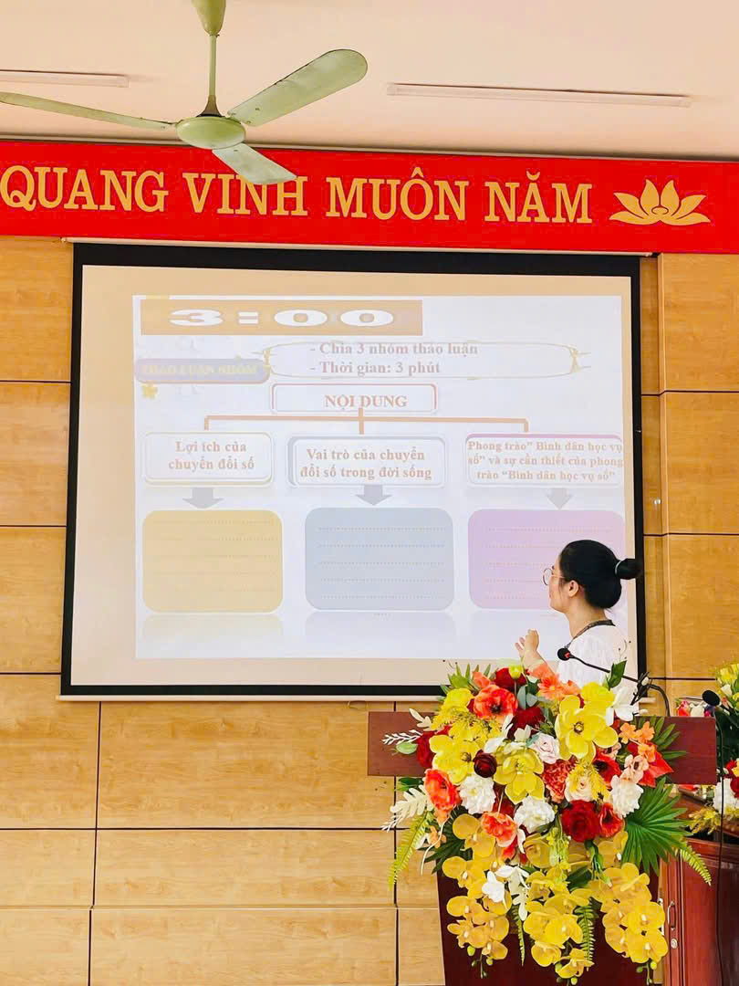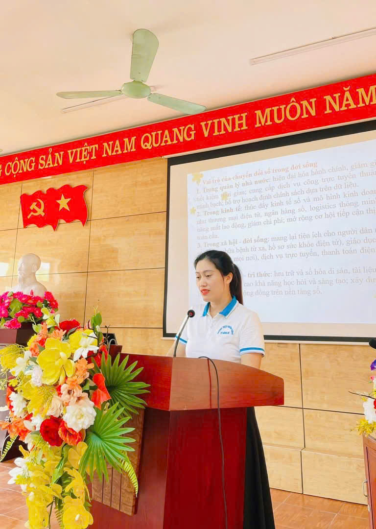 🎯 Buổi sinh hoạt nhằm nâng cao nhận thức cho cán bộ, đảng viên về vai trò, tầm quan trọng của chuyển đổi số và kỹ năng số trong giai đoạn hiện nay. Qua đó, mỗi đảng viên phát huy tinh thần tiên phong, gương mẫu, chủ động tiếp cận và ứng dụng công nghệ thông tin trong công tác giảng dạy, quản lý và các nhiệm vụ chuyên môn, góp phần nâng cao chất lượng giáo dục toàn diện trong nhà trường. Đây cũng là dịp để tập thể Chi bộ gắn việc thực hiện nhiệm vụ chính trị với phong trào thi đua “Mỗi thầy, cô giáo là một tấm gương tự học và sáng tạo trong thời đại số”.