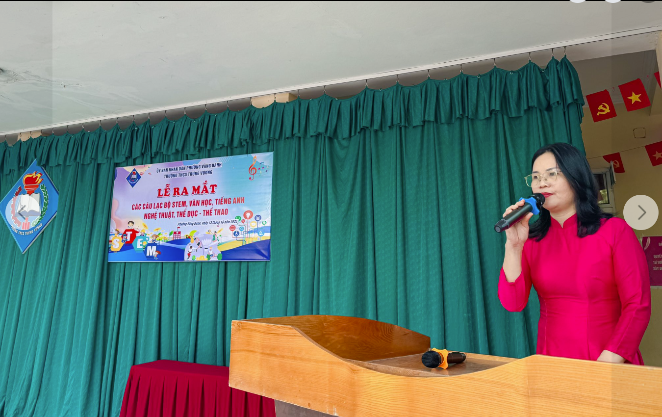 ☀️☀️☀️Mở đầu chương trình, cô Đặng Ánh Tuyết – Phó Hiệu trưởng nhà trường khẳng định, việc thành lập các câu lạc bộ (CLB) là bước đi quan trọng trong định hướng xây dựng “Trường học hạnh phúc – Học sinh tích cực”, sáng tạo và đam mê trải nghiệm. Cô đã công bố và trao quyết định thành lập 5 câu lạc bộ gồm: CLB STEM/STEAM, CLB Ngữ văn, CLB Tiếng Anh, CLB Thể dục thể thao, CLB Nghệ thuật. Ban Giám hiệu gửi lời cảm ơn tới các thầy cô giáo, các bậc Cha mẹ học sinh đã đồng hành và tin tưởng vào hoạt động của Nhà trường, đồng thời bày tỏ mong muốn mỗi học sinh Trưng Vương sẽ tích cực tham gia, phát huy năng lực, cùng nhau xây dựng các Câu lạc bộ ngày càng vững mạnh.
