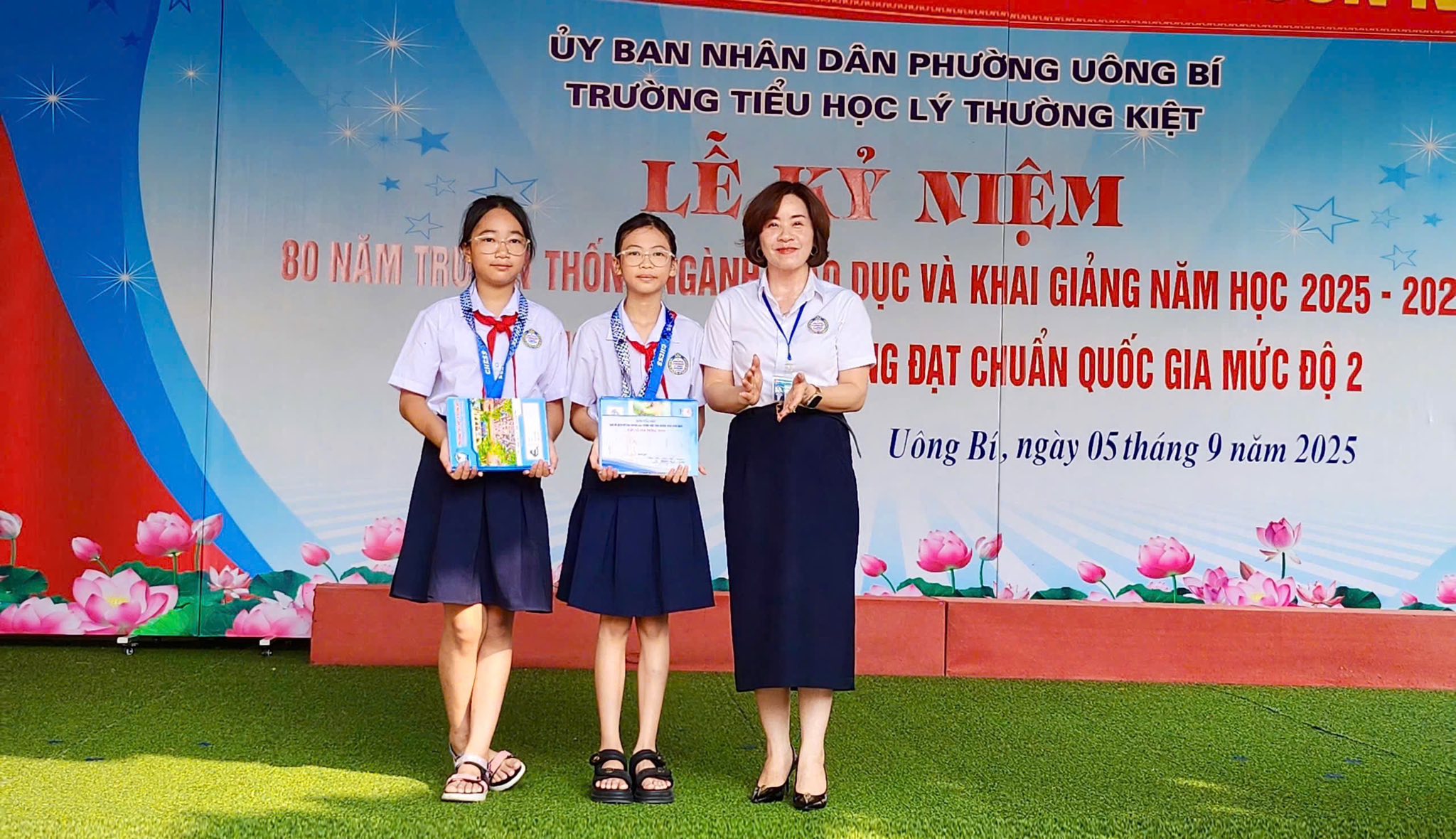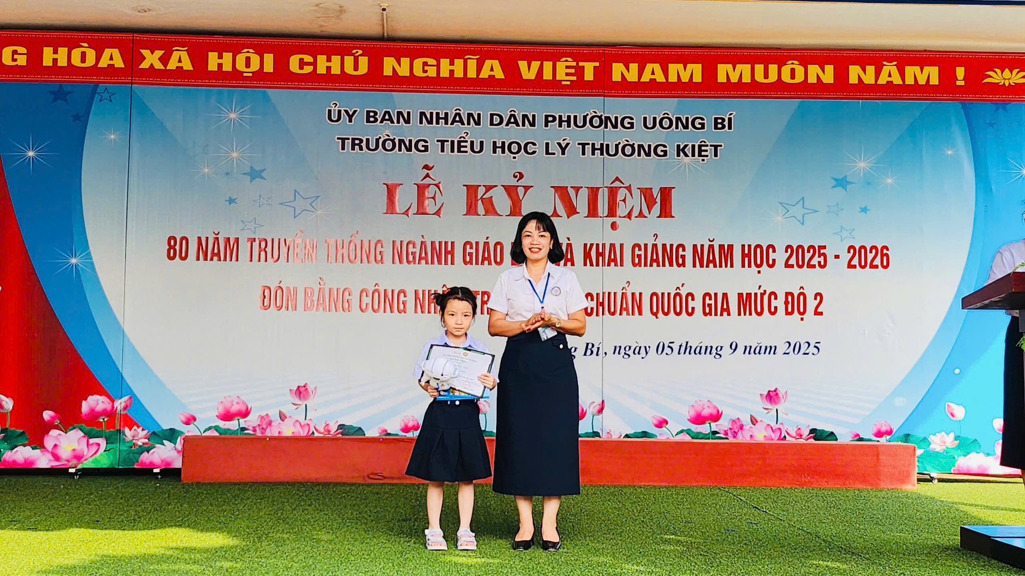 🎉 Đặc biệt, trong buổi sinh hoạt hôm nay, nhà trường đã long trọng trao thưởng và tuyên dương Em Dương Kiều Anh - HS lớp 2A4 đã xuất sắc lọt vào Top 20 thí sinh xuất sắc nhất khu vực miền Bắc cuộc thi Vioedu diễn ra trong tháng 8/2025 tại Hà Nội.