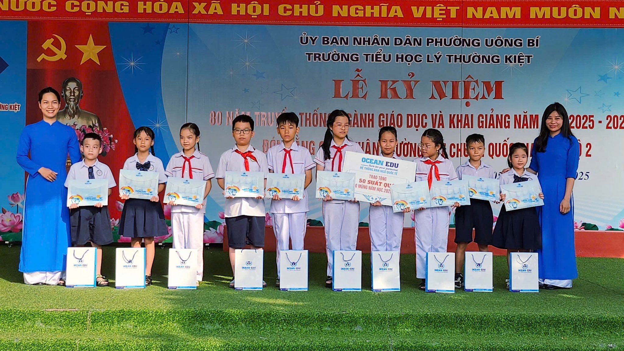 Cũng nhân dịp này trung tâm Tiếng Anh OCEAN EDU cũng đã trao tặng 50 phần quà cho 50 học sinh có thành tích học tập Tiếng Anh tốt trong năm học 2024 - 2025.