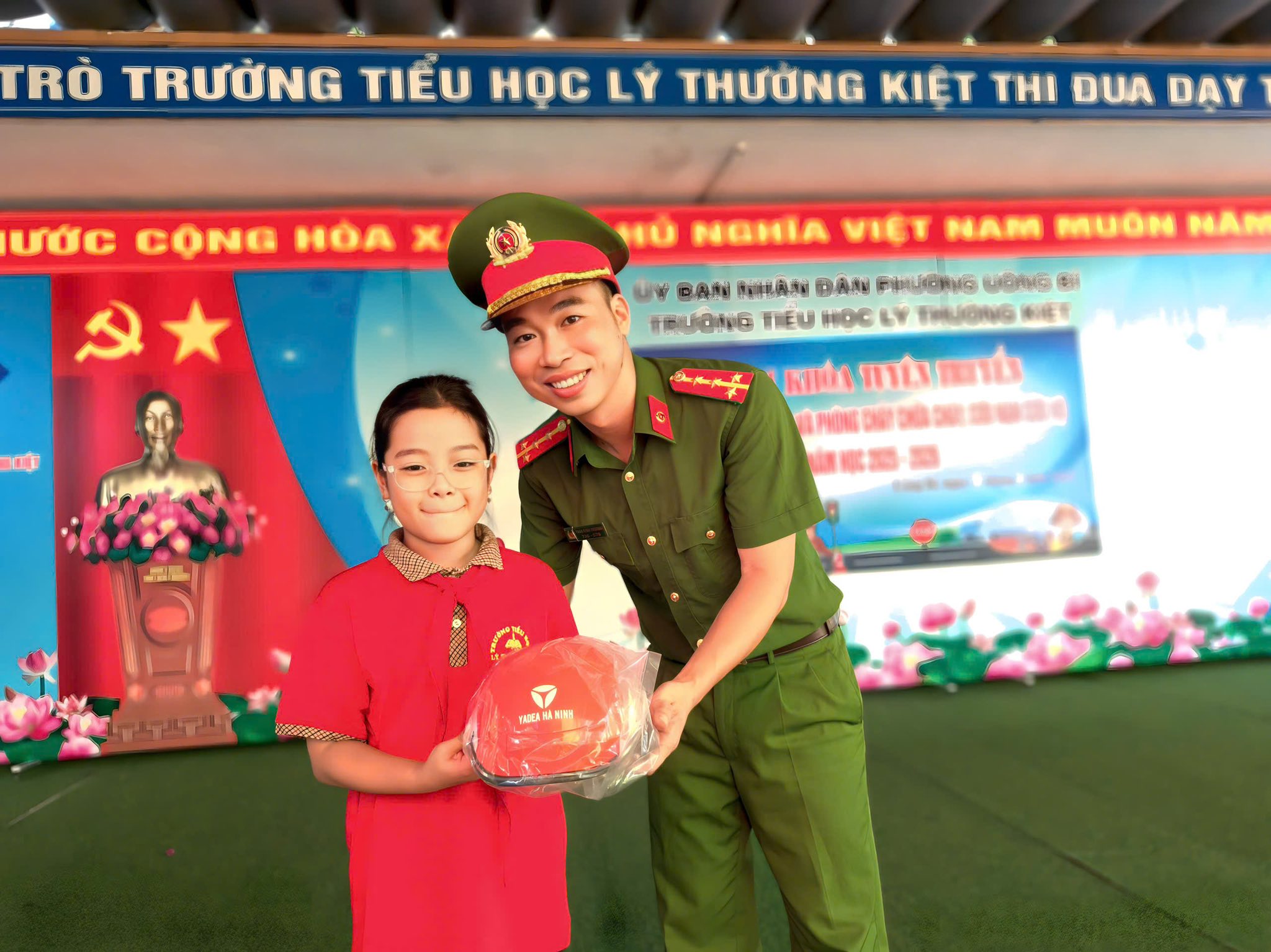 Đặc biệt, Thiếu tá Nguyễn Viết Hoàn tổ CSTT Công an phường Uông Bí đã trực tiếp tuyên truyền kiến thức về ATGT và giao lưu đặt câu hỏi cho học sinh. Các em rất hào hứng tham gia và nhận được những phần quà ý nghĩa là những chiếc mũ bảo hiểm xinh xắn, an toàn.