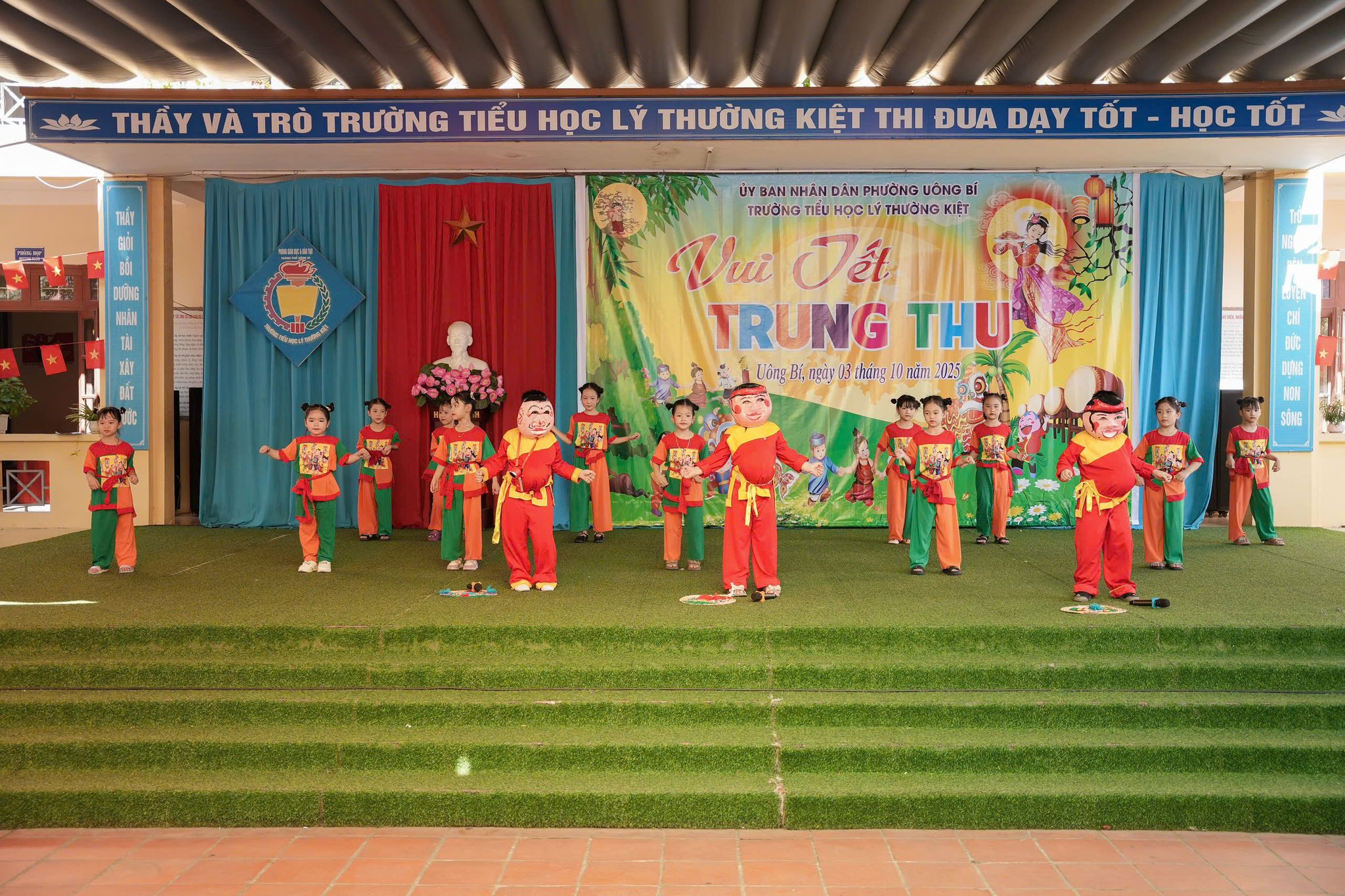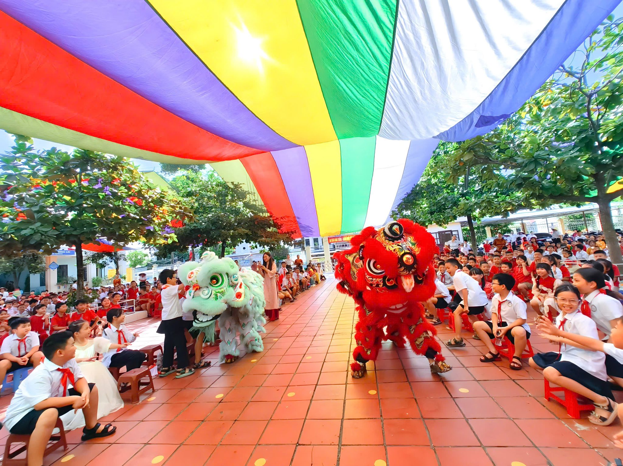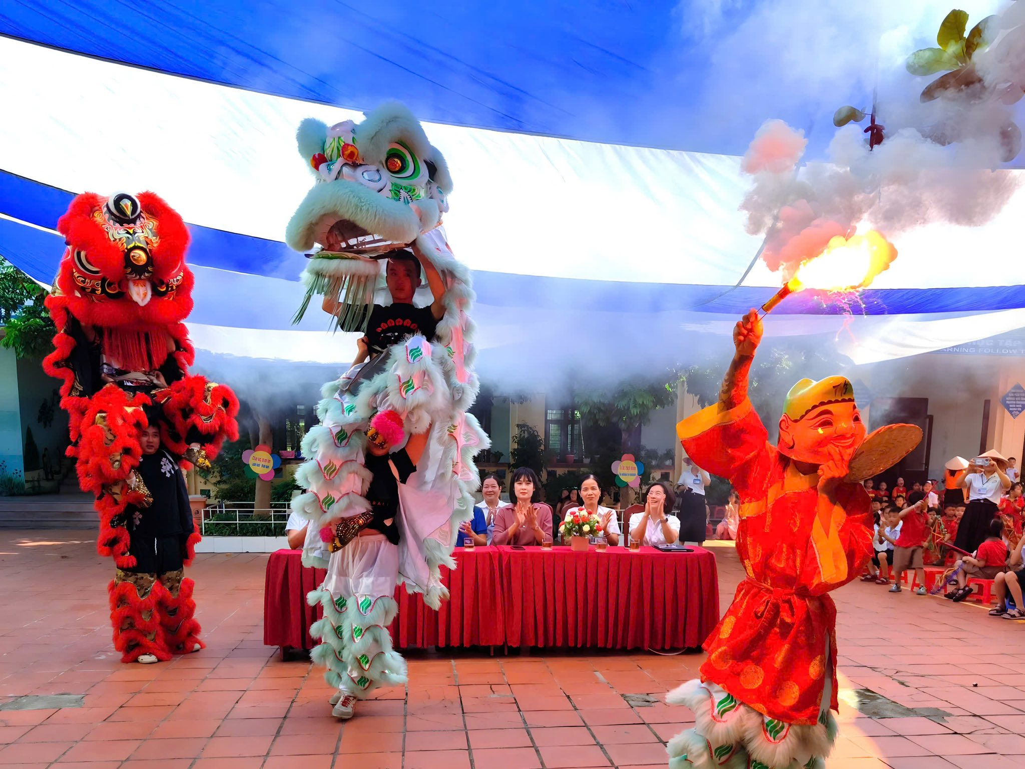 Đặc biệt, phần được học sinh yêu thích và mong chờ nhất chính là màn múa lân rộn ràng, tưng bừng. Tiếng trống lân dồn dập, điệu múa uyển chuyển đã khuấy động không khí sân trường, mang đến niềm vui trọn vẹn cho các em trong ngày hội trăng rằm.