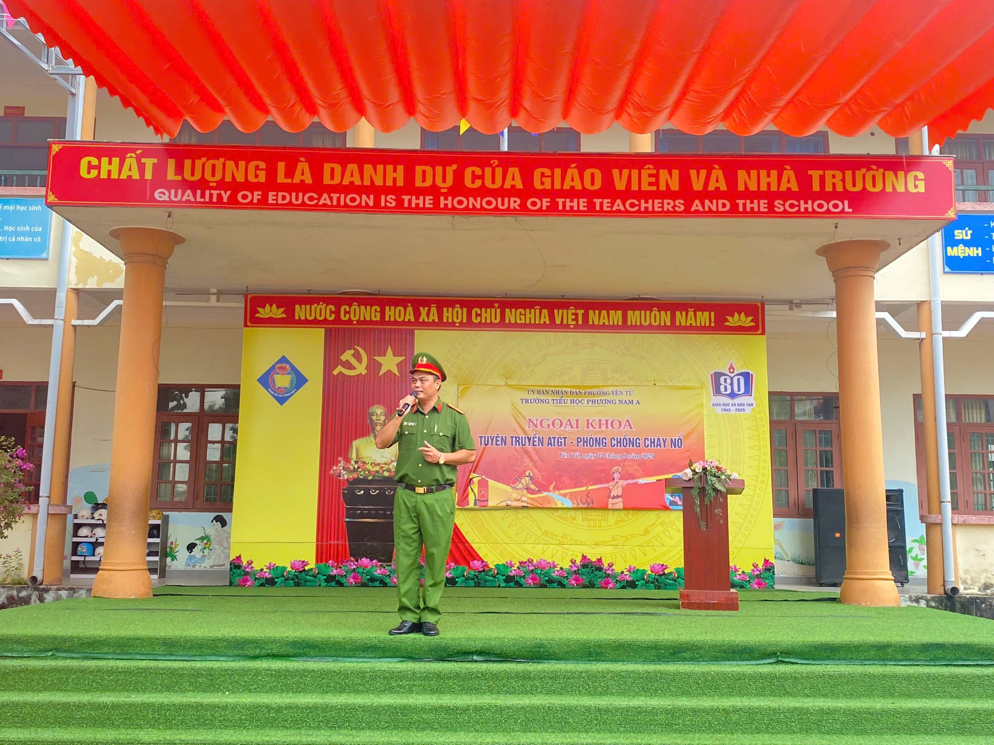 👨✈️ Đến tham dự và trực tiếp tuyên truyền có đồng chí Lê Văn Nghi – Cán bộ Công an phường Yên Tử. Buổi ngoại khóa đã mang đến cho học sinh nhiều kiến thức bổ ích thông qua hình thức giảng giải, minh họa sinh động, tiểu phẩm và văn nghệ tuyên truyền. Các em học sinh không chỉ được tiếp thu kiến thức lý thuyết mà còn được trải nghiệm, thực hành tình huống, từ đó rút ra nhiều bài học quý giá về chấp hành luật ATGT và cách phòng tránh nguy cơ cháy nổ trong đời sống hàng ngày.
