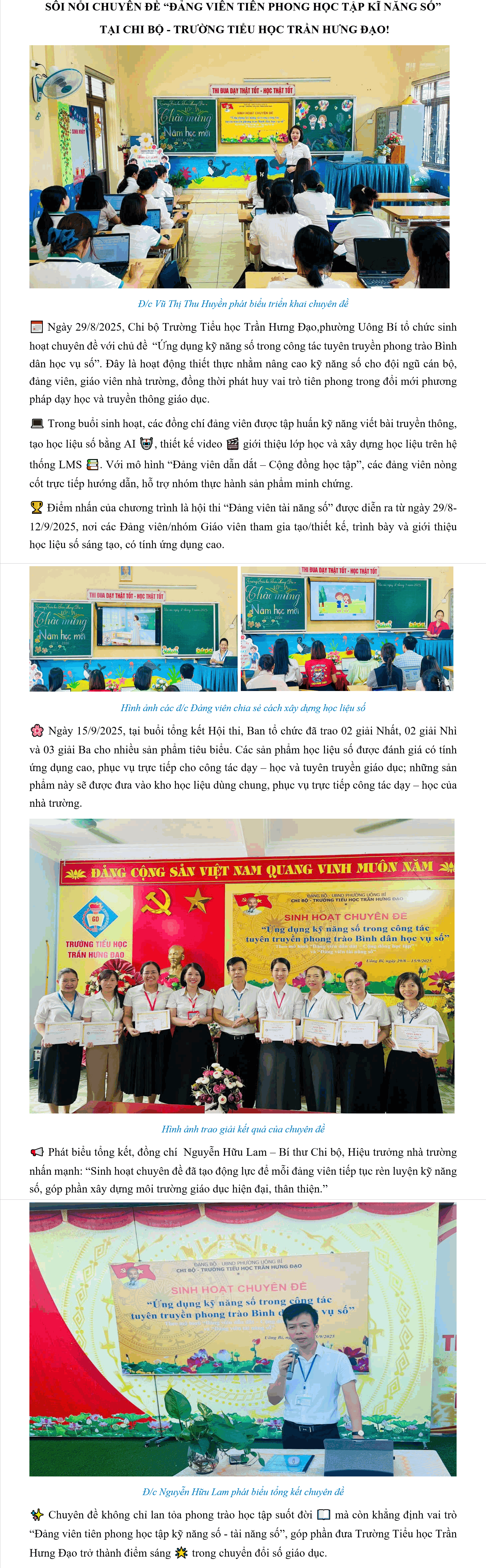 SÔI NỔI CHUYÊN ĐỀ “ĐẢNG VIÊN TIÊN PHONG HỌC TẬP KĨ NĂNG SỐ” TẠI CHI BỘ - TRƯỜNG TIỂU HỌC TRẦN HƯNG ĐẠO!